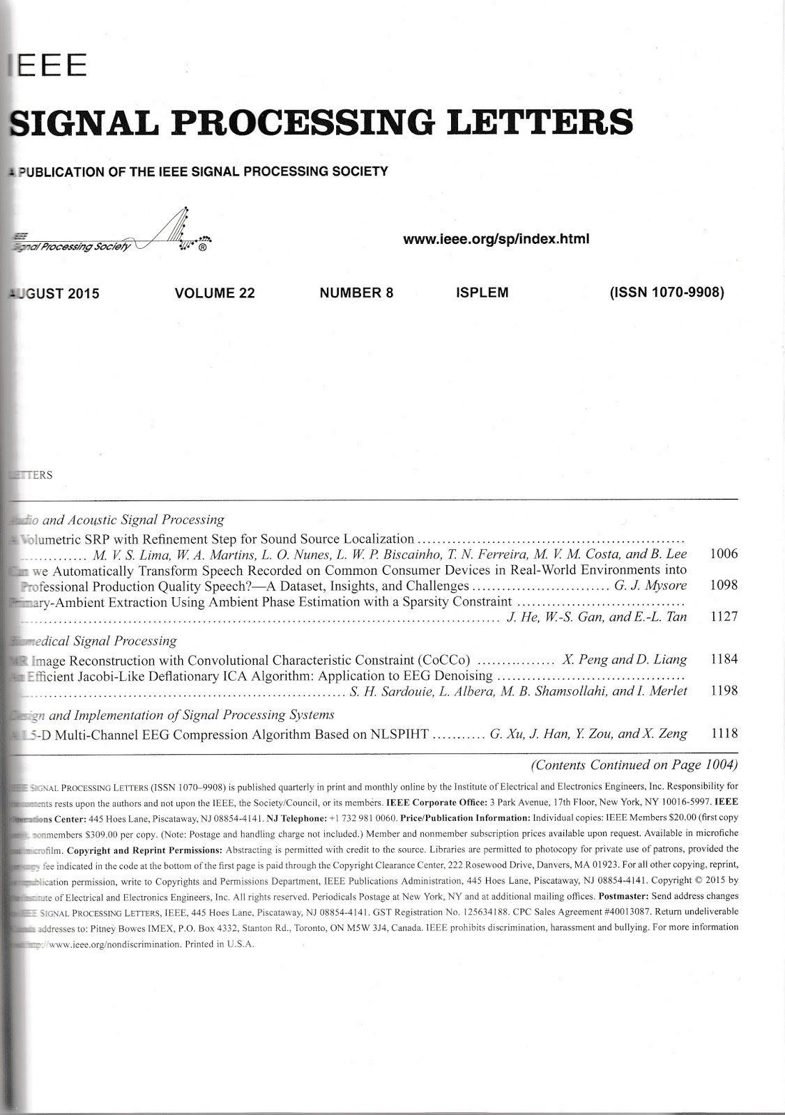 IEEE SIGNAL PROCESSING LETTERS V. 22, N. 7-9 JUL./SEPT. 2015
